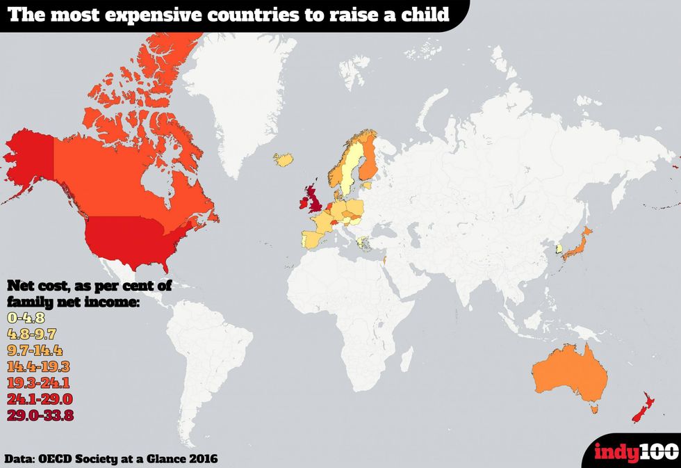 The Society at a Glance report 2016 found that the average childcare costs of OECD nations were around 15 per cent of the net family income.