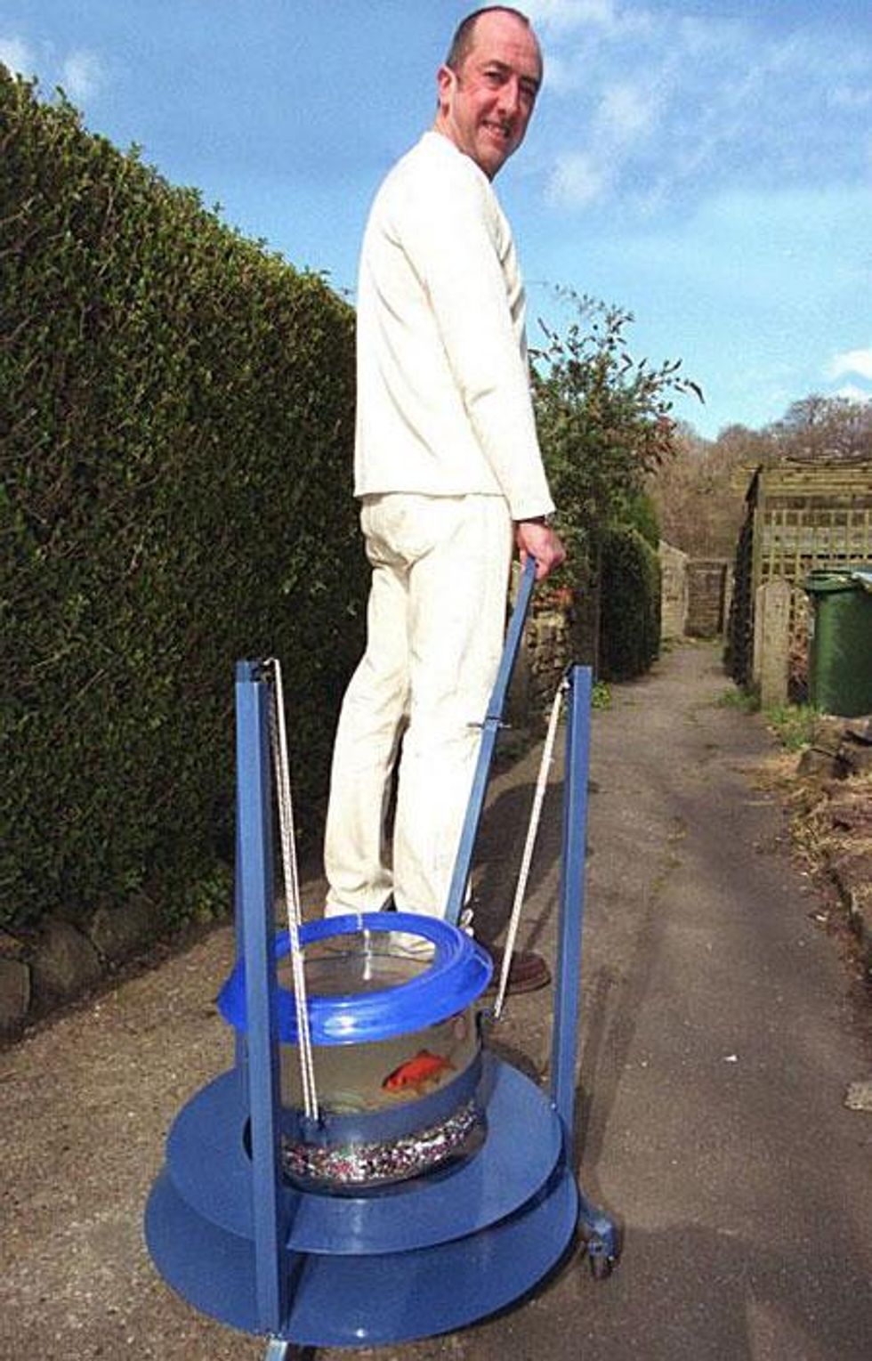 "I was looking at my goldfish [Malcolm and Ethel] going round in circles in their bowl looking bored silly so I made this to take them out and about and they love it," explained Huddersfield metal worker Mick Madden.