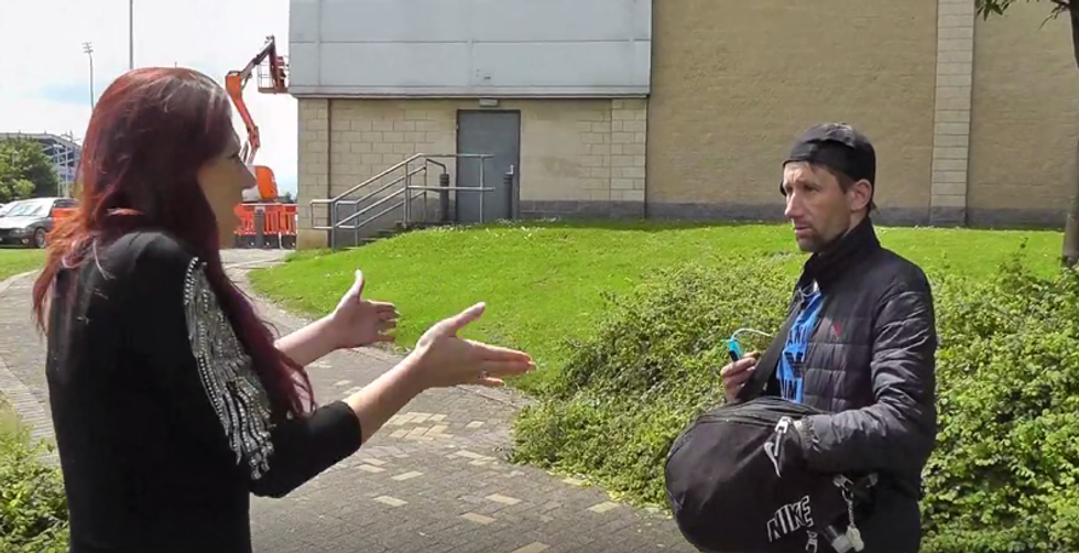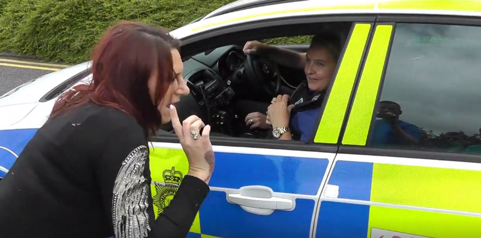 Fransen flags down a police car and a community support officer who appears more bemused than anything else. And when the boyfriend turns up, Fransen and co aggressively chase him down the street.