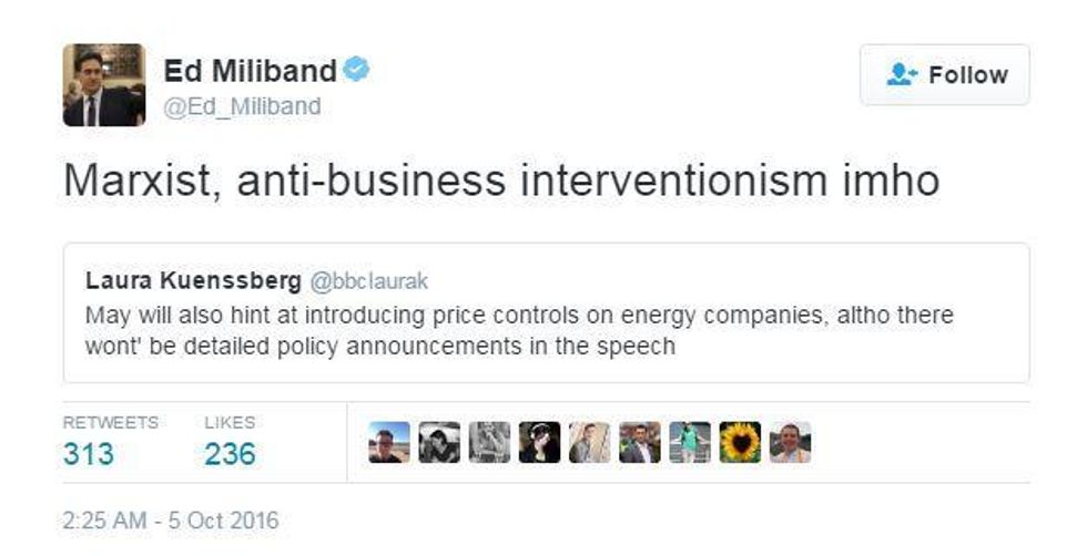 Such seemingly right-wing social policies (immigration) and left-wing economic policies (energy), saw some compare May to a cross between former (or is he still current?) Ukip leader Nigel Farage and former Labour leader Ed Miliband.