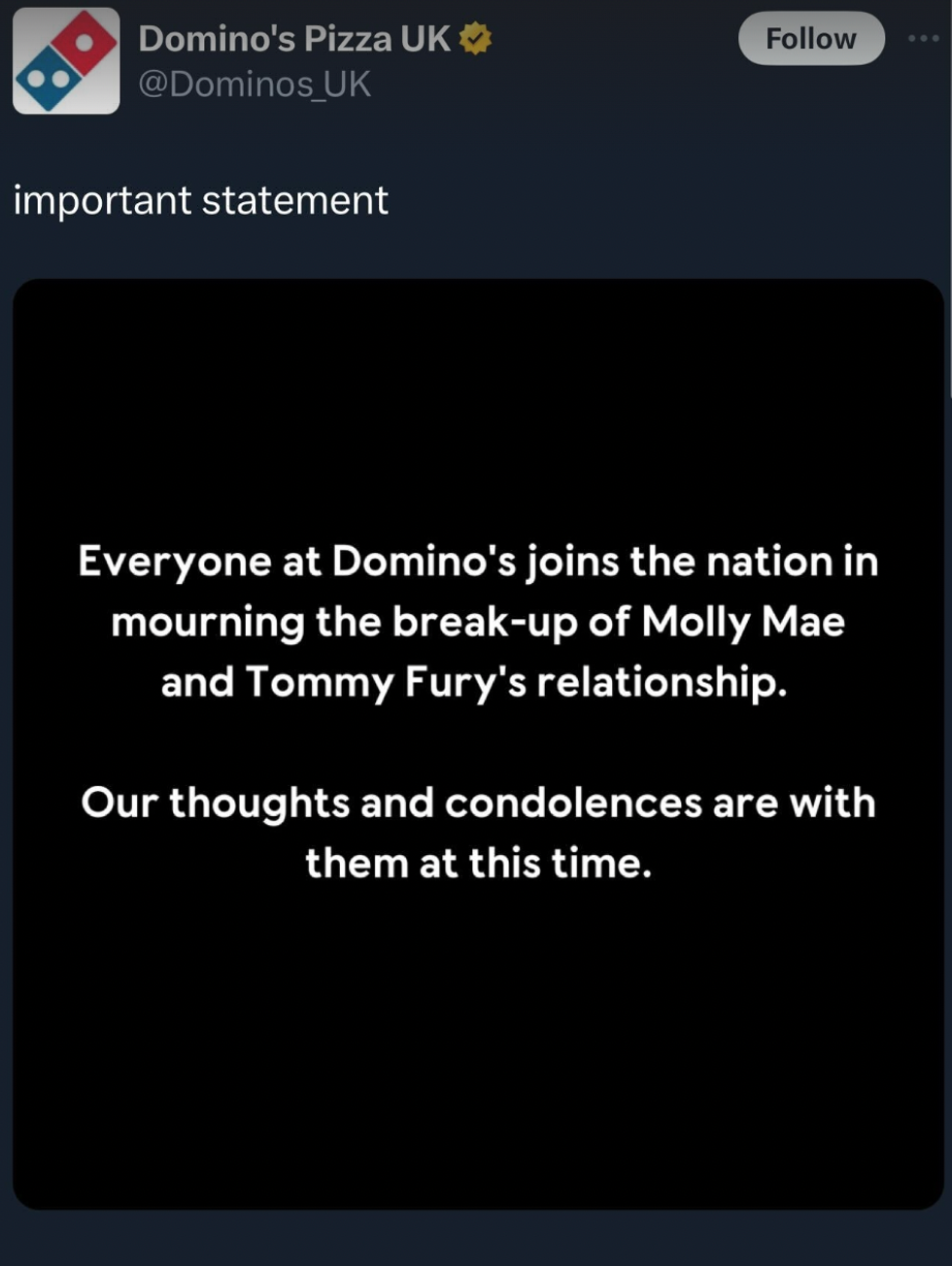 Ele's social media, like thousands of others across the UK, was inundated with reactions off the back of the split. But, it wasn't just people empathising with Molly's heartbreak, brands soon jumped on the bandwagon for a quick "content opportunity."