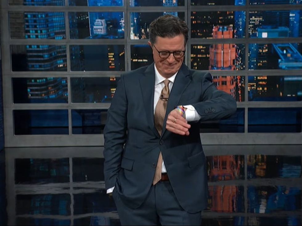 In fact, they went on for so long that during their reaction, Colbert is seen grinning and jokingly checked his watch.