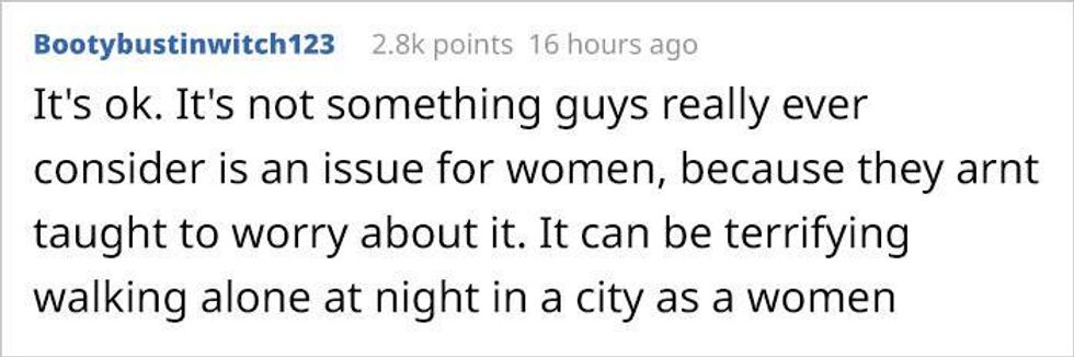 Thankfully, people soon responded with thoughtful responses. Explaining the origin of women’s spaces – to keep women safe – and sharing personal experiences of feeling unsafe in public.