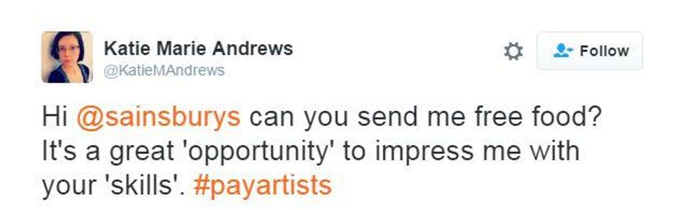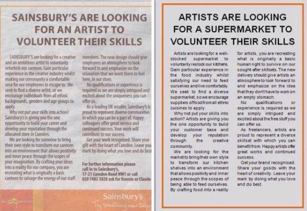 Rather than pay someone to refurbish their entire staff canteen, a Sainsbury’s branch in Camden, north London, graciously offered an artist – a profession famed for its stratospheric salaries - the “chance to be recognised.”