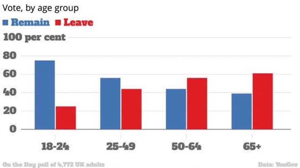 The generation gap between Remain voters and Leave voters is quite apparent.