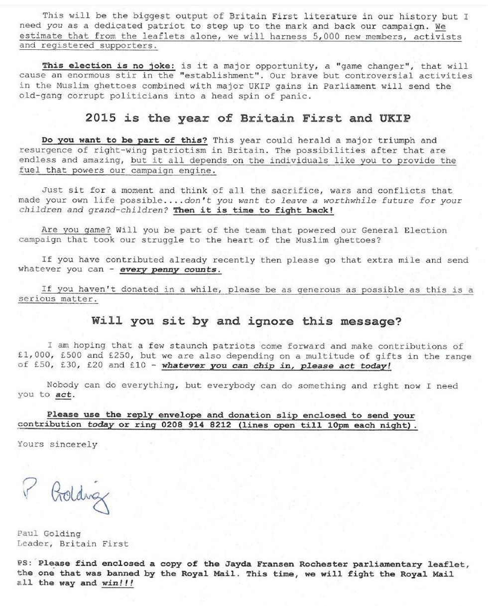 New literature being distributed by Britain First, a group formed by former members of the British National Party, claims 2015 will be "the year of Britain First and Ukip", effectively endorsing the party.