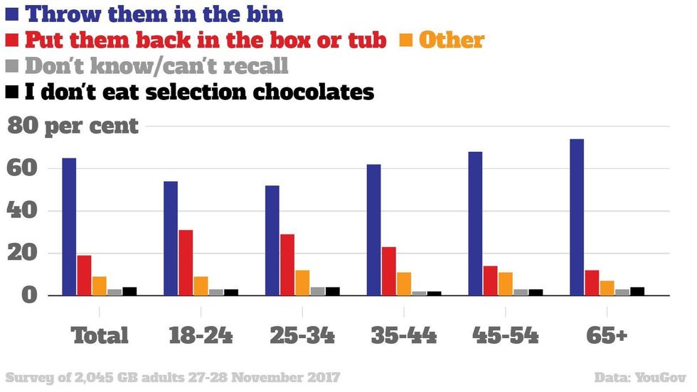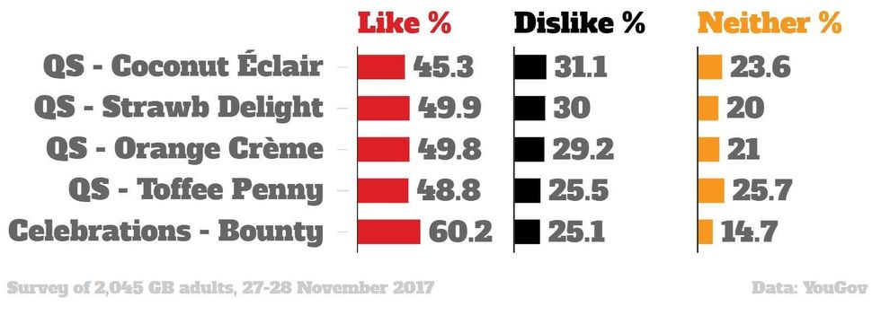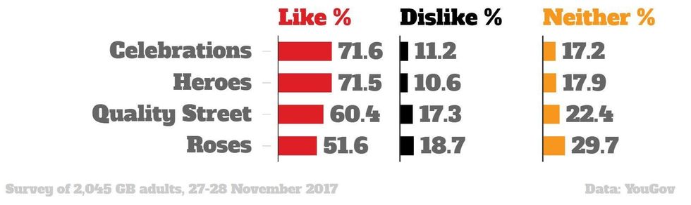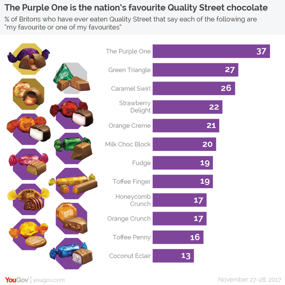 YouGov ranked the favourite chocolates in each selection box, including Quality Street:
