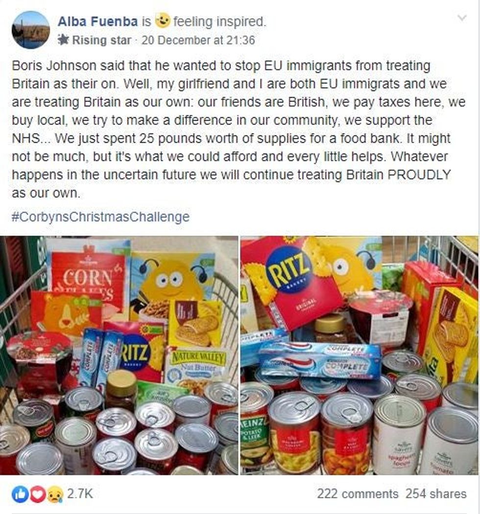 A group called Corbyn's Christmas Challenge is turning lemons into lemonade and encouraging people to donate to their local food bank.