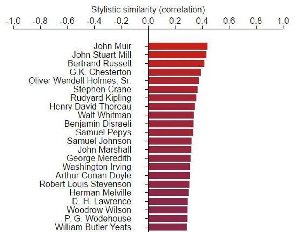 Providing us all with flattering comparisons, Mark Allen Thornton, a PhD student at Harvard University has used the texts available on Project Gutenberg to create a text analyser that will find your writing twin.