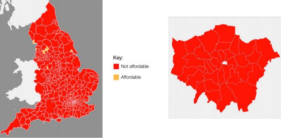A family on the minimum wage in 2020 would only be able to afford houses in two per cent of England's councils - and in London, even 'starter' homes will only be affordable for people earning more than £77,000 - the cut off salary for being in the one per cent.