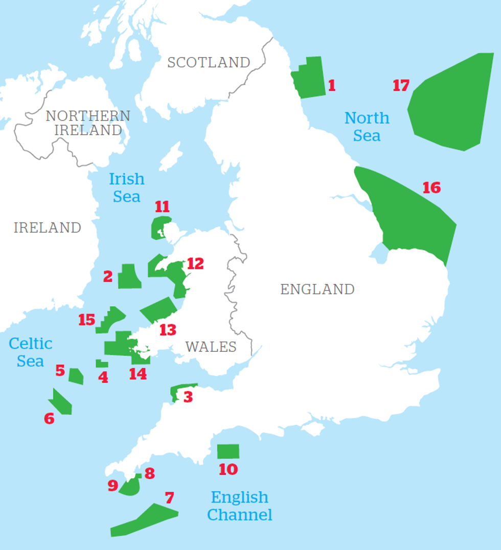 The organisation has highlighted a further 17 marine “hotspots” around England and Wales it believes must be created to protect large sea animals.