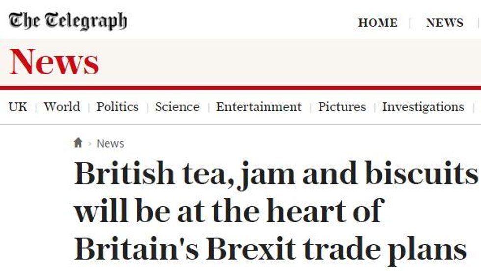 Speaking to the assembled business folk, the minister for parochial affairs claimed there would be a boost of £2.9 billion for the UK, including the sale of tea, jam, and biscuits.