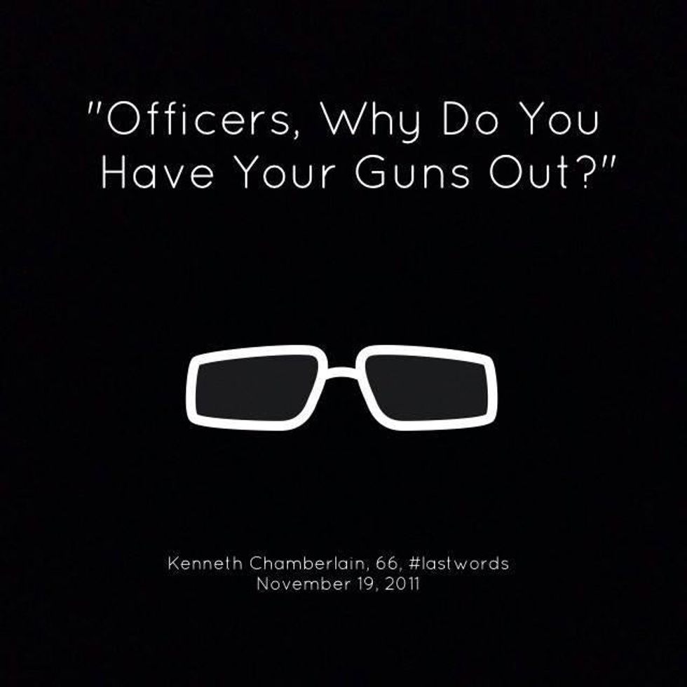These were Kenneth Chamberlain's last words, according to his niece Tonyia Greenhill. He was shot in New York in 2011.