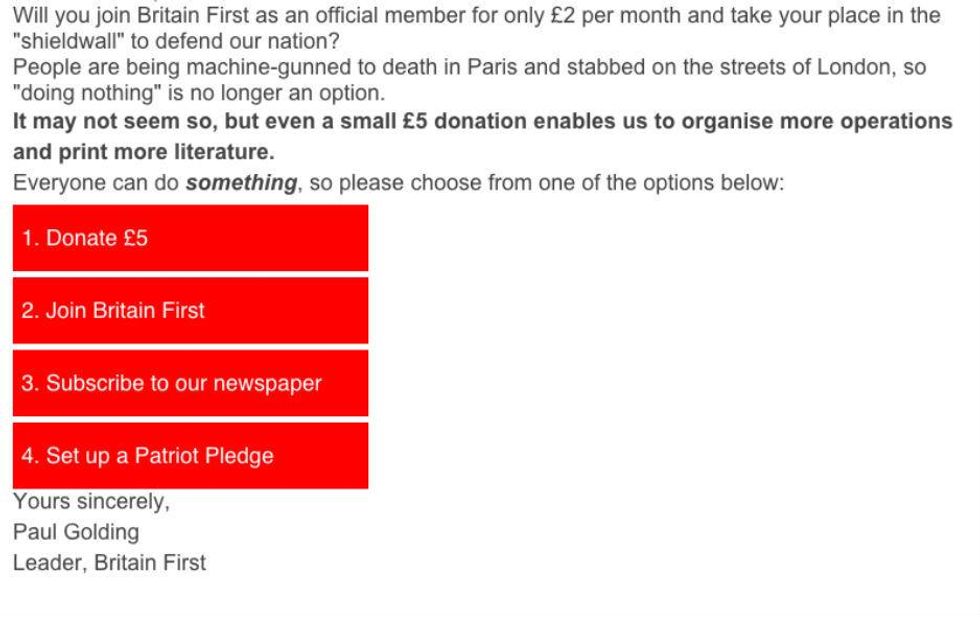 A screengrab from the Britain First emailSo, dear readers, we fact-checked it. And we bet you won't believe what happened next.