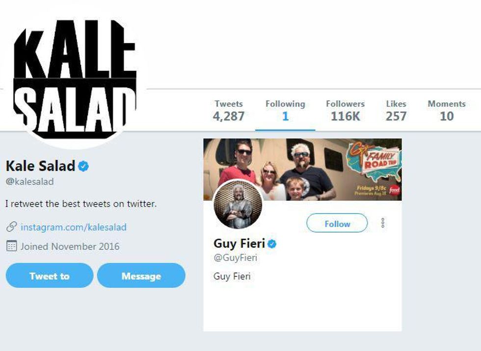 So who's behind @KaleSalad and why is the account only following American restaurateur Guy Fieri?