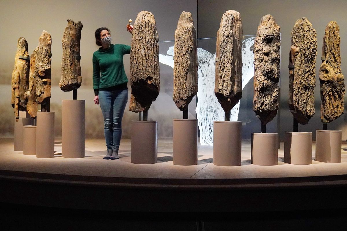 The monument, which was uncovered on a beach in Norfolk, consists of an upturned oak stump encircled by 55 split trunks of the same wood, spaced out in an oval formation.