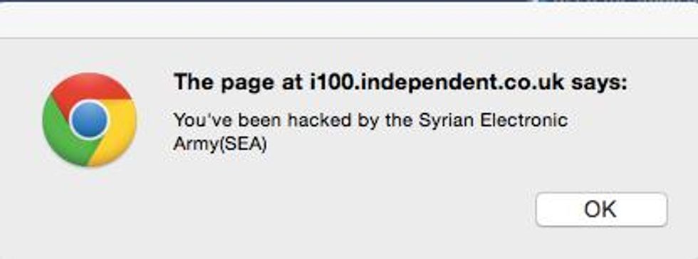 A group purporting to be the Syrian Electronic Army, a pro-Assad hacking group, briefly took down a series of popular websites today. Users visiting links to sites including i100 and the Independent were greeted with a message saying "you've been hacked by the Syrian Electronic Army (SEA)".