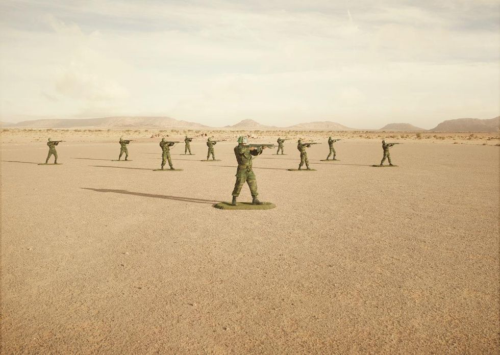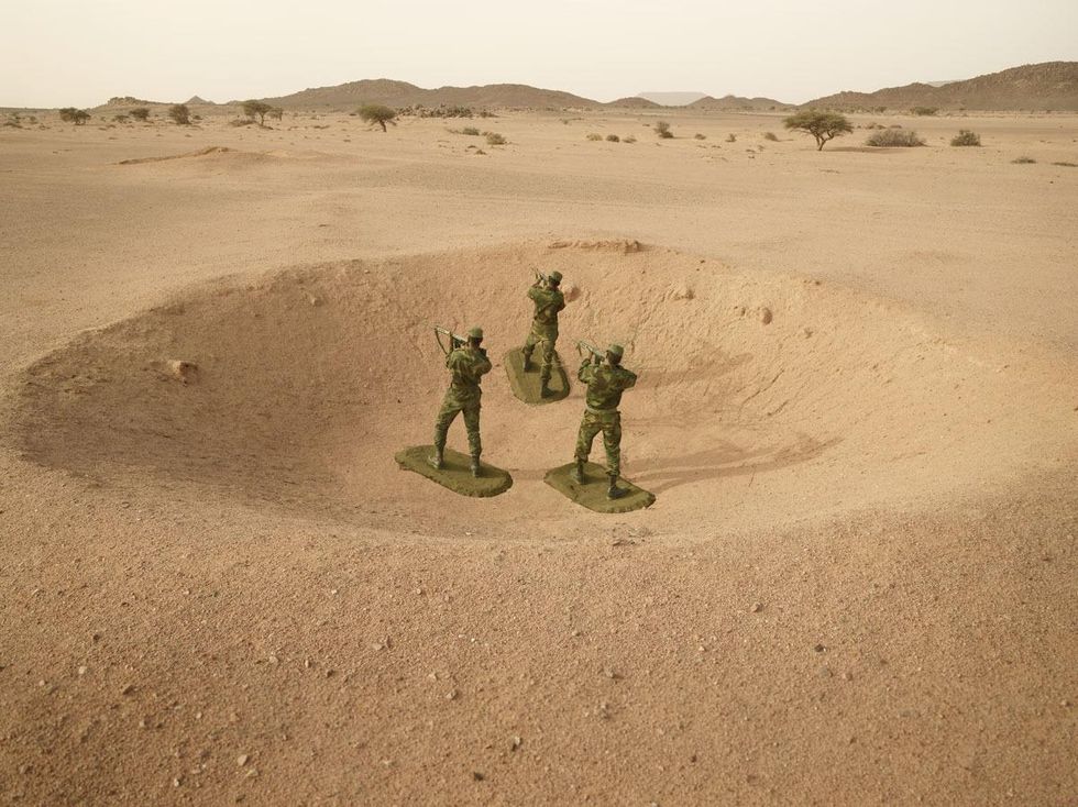 Artist Simon Brann Thorpe has photographed soldiers posing as toy figurines to draw attention to the ongoing conflict over disputed territory in Western Sahara.
