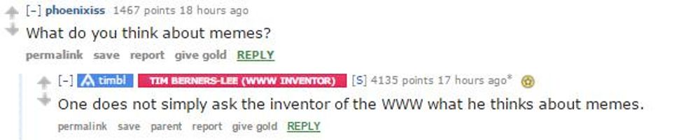 Tim Berners-Lee, the British inventor of the world wide web, took part in a Reddit AMA back in 2015 - the highlight of which was this simply incredible response to this question about memes.