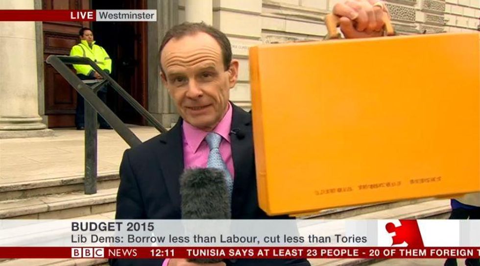 His answer? To deliver a Lib Dem alternative with a big, shiny yellow briefcase with 'Liberal Democrat Budget' written on it. Suffice to say, things went downhill very quickly.