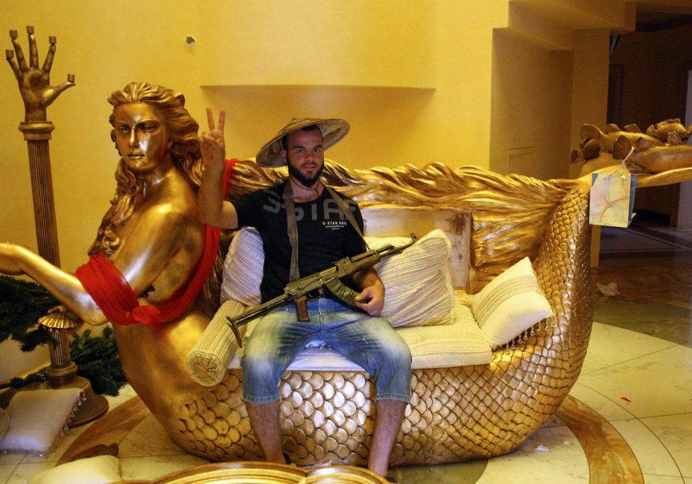 The undisputed bling king had a thing for golden guns - famously, a rebel brandished a gold-plated pistol that was taken from his dead body during the 2011 revolution in Libya. Other items found in his house included a golden AK-47, a golden fly swatter and a golden sofa, shaped like a mermaid. Seriously.