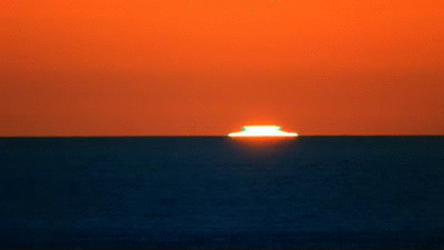 Sunrises or sunsets with a green flash, such as this one in California, occur when the atmosphere causes the light from the sun to separate out into different colours.