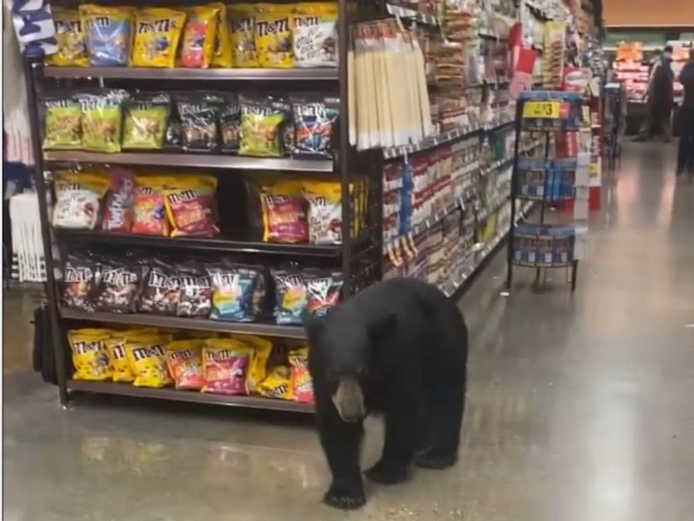 Shoppers were stunned over the weekend when a black bear wandered into a grocery store – and it was all caught on camera.