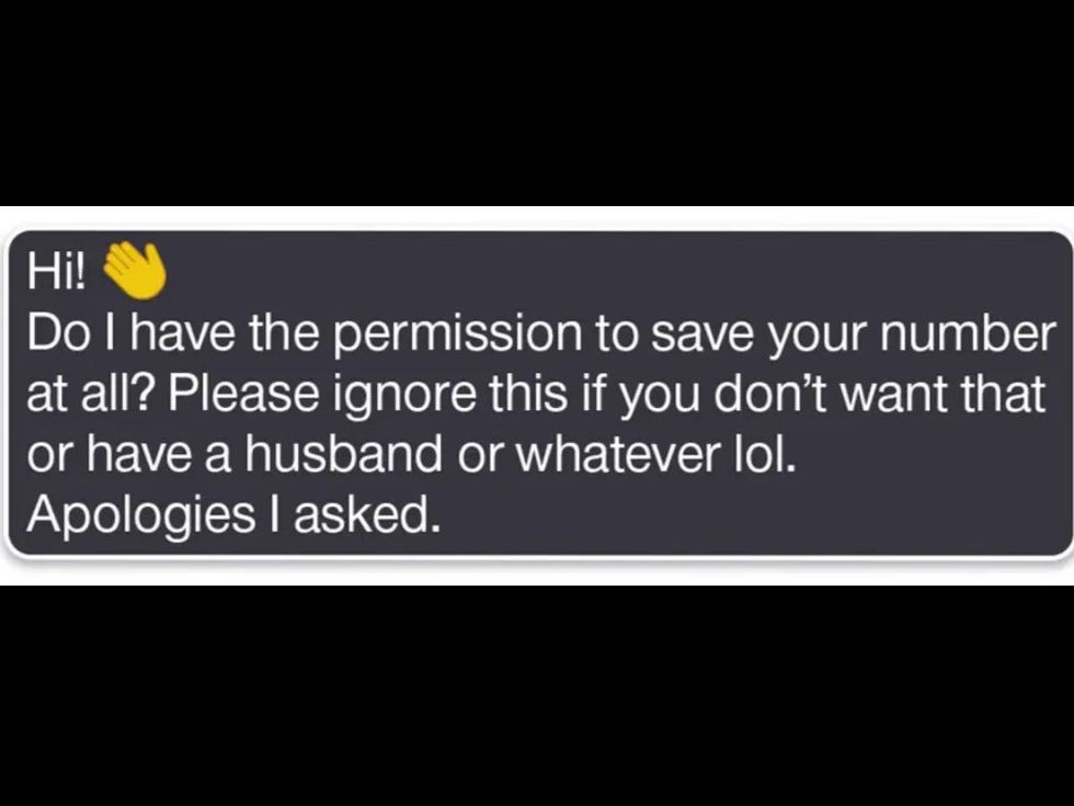Just a few minutes after she closed the door, she received a text, which read: “Do I have the permission to save your number at all?”