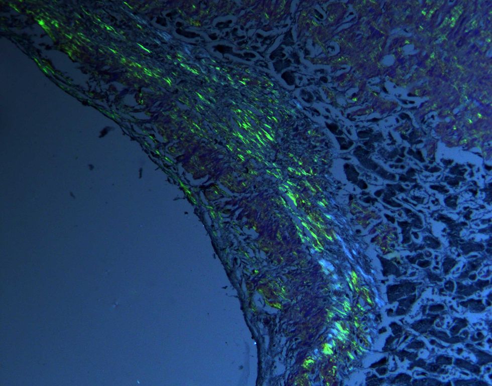 The majority of the images are representative of what Dr Hamel sees when performing autopsies. The colours are diagnostic colours which are added to slides to help define human tissue.