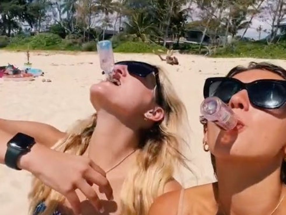 Eventually, however, the two settled on the beach, where they downed shots of something and enjoyed the view - sharing the whole experience on TikTok, of course.