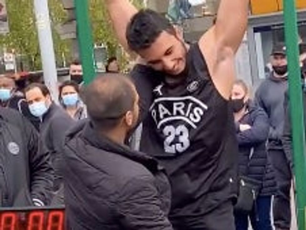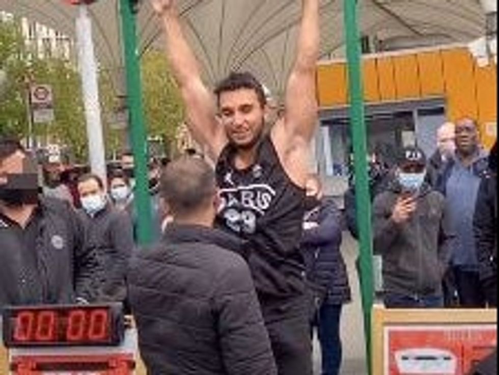 The ripped dude was taking part in the challenge at a bus stop in London in a clip that went viral on TikTok. It showed him easily clinging to the bar, but one of the men operating the challenge looking increasingly agitated as the prospect of paying out the jackpot looked increasingly likely.