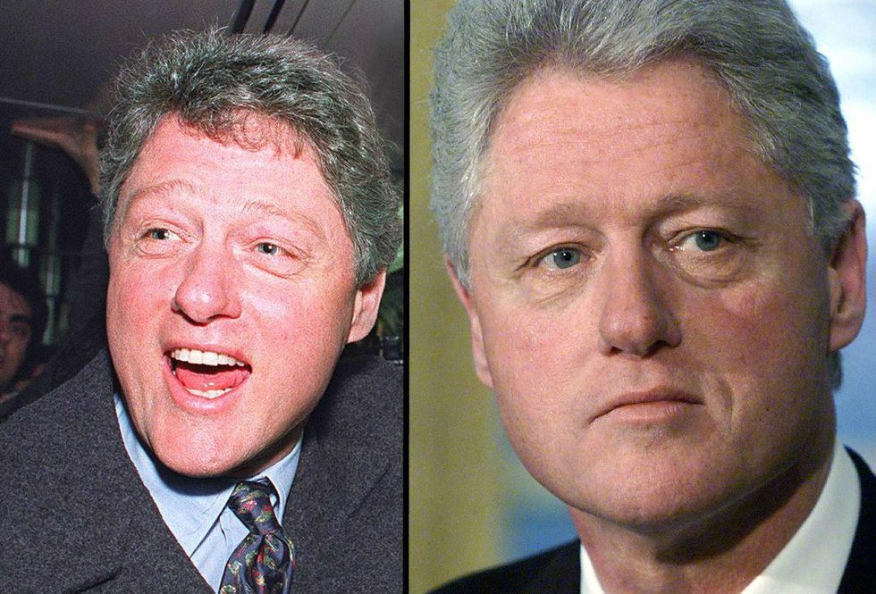 The right image - with just one year left of his presidency, Bill Clinton seems tired.