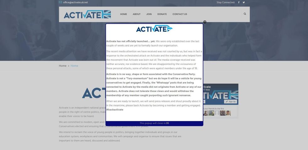 Activate is in no way, shape or form associated with the Conservative Party.Activate is not a 'Tory-momentum' but we do hope it will be a vehicle for young conservatives to get engaged. Finally, the ‘Whatsapp’ posts that are being connected to Activate by the media did not originate from Activate or any of our members. Activate does not tolerate those views and would withdraw the membership of any member caught purporting such ignorant nonsense.