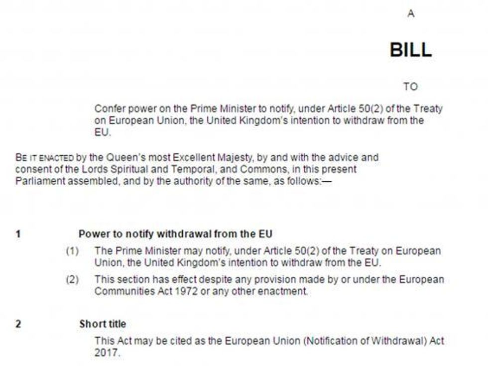 Theresa May finally published the 'Brexit bill,' the piece of legislation that's going to take us out of the European Union – and it’s a scant six lines worth of legislation.