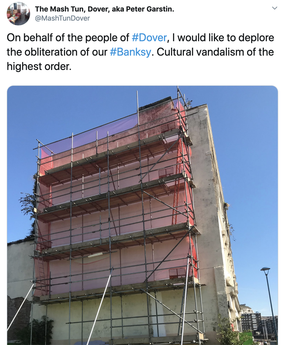 A Dover native called David Joseph Wright told CNN that a four-tier scaffolding had appeared beside the secretive street artist’s mural and by the morning, it had gone.