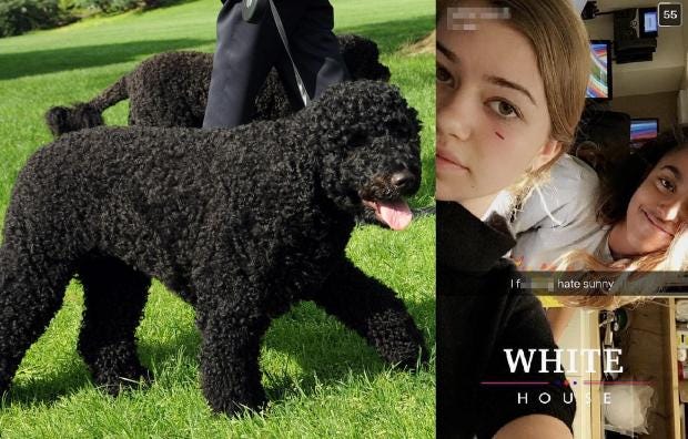 However, Sunny's reputation is far from squeaky clean. Outgoing POTUS told People magazine that the dog took to relieving herself on an area inside the White House, near his office.