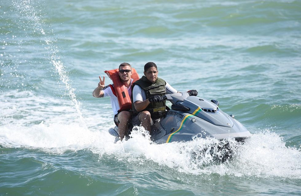According to an article published at the time the photo was taken by Mail Online, Podolski and Miroslav Klose were taken out on jet skis while other members of the team sailed and enjoyed the beach.