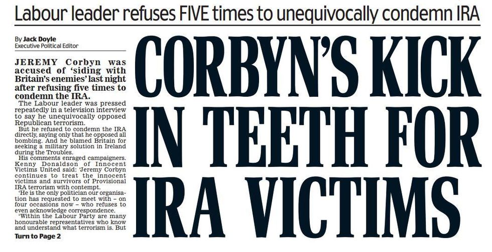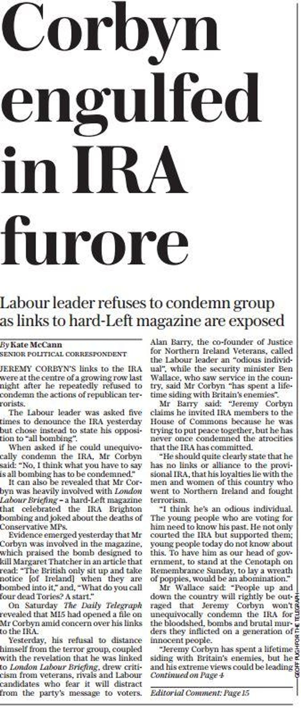 The bias is evident in the headlines used by the Daily Mail and the Daily Telegraph to sum up Corbyn's remarks on Ridge's programme.