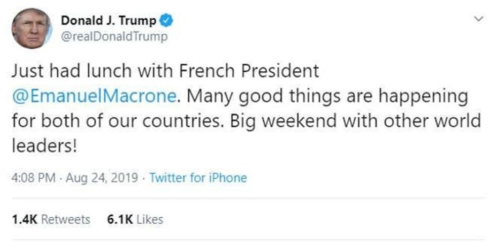 Trump held a private lunch with Macron before the start of the Group of Seven summit in the resort town of Biarritz.