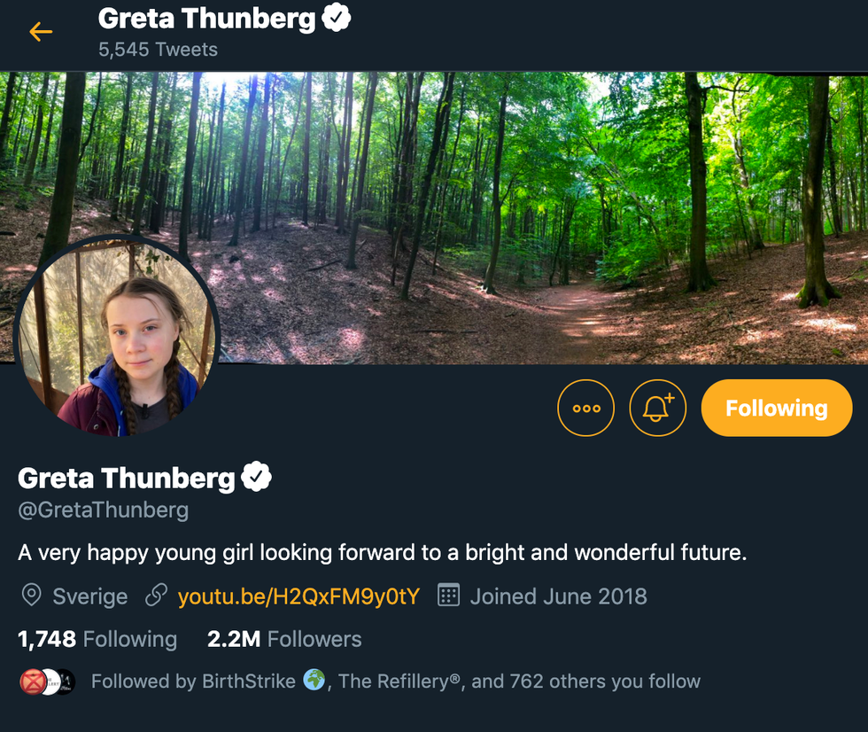 In response, Thunberg changed her Twitter bio to read: "A very happy young girl looking forward to a bright and wonderful future."