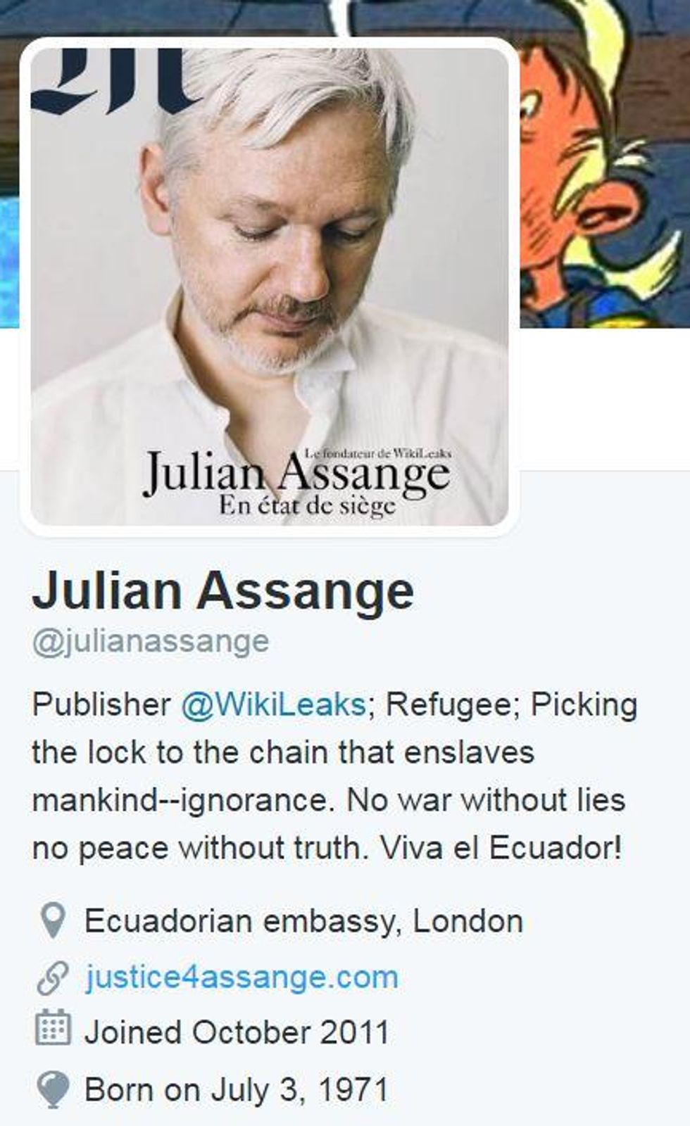Julian Assange appears to have started a new Twitter account, describing himself as a 'refugee' in his latest bio.