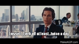 One can't help but recall Matthew McCaughnahey's wired stockbroker in The Wolf of Wall Street, urging wide-eyed novice Leonardo DiCaprio to adopt a more effective tension-relief technique.