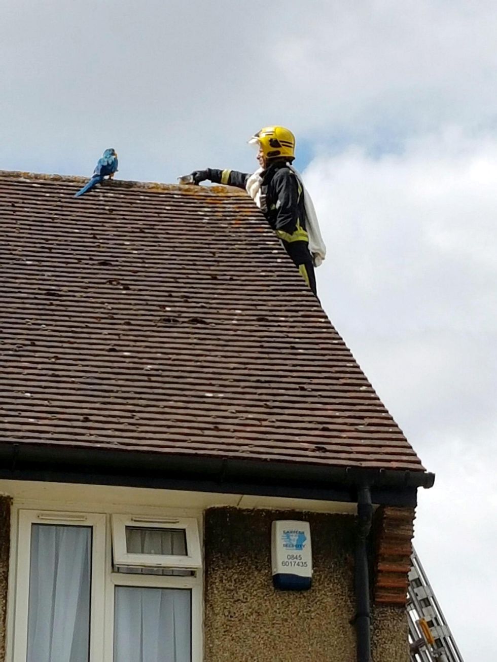As Jessie wasn't injured, the firefighters, who had been called in by the RSPCA, left her on her perch.