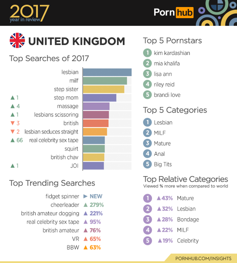 For instance, the number one search in 2017 on Pornhub was "Porn for Women" (up 1,400 per cent year on year), while the website noted a 359 per cent growth among female users between 2016 and 2017.