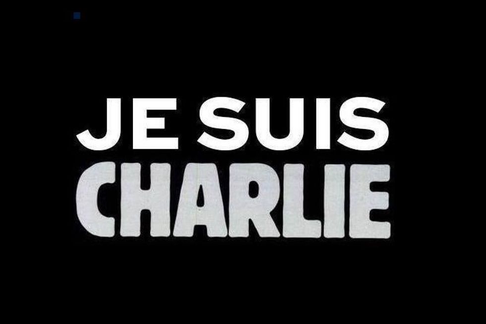 Le Monde released this cartoon as a response to the attack, which reads "all hearts with Charlie Hebdo".