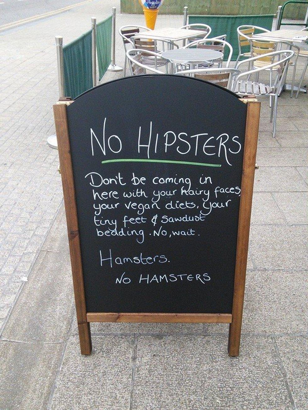 It started two years ago. It was coming to the end of summer-we’re right beside the beach. We bought a board to advertise the specials. It arrived, and I came across a joke about hipsters on Facebook. It tickled my fancy, so I put it on the board.