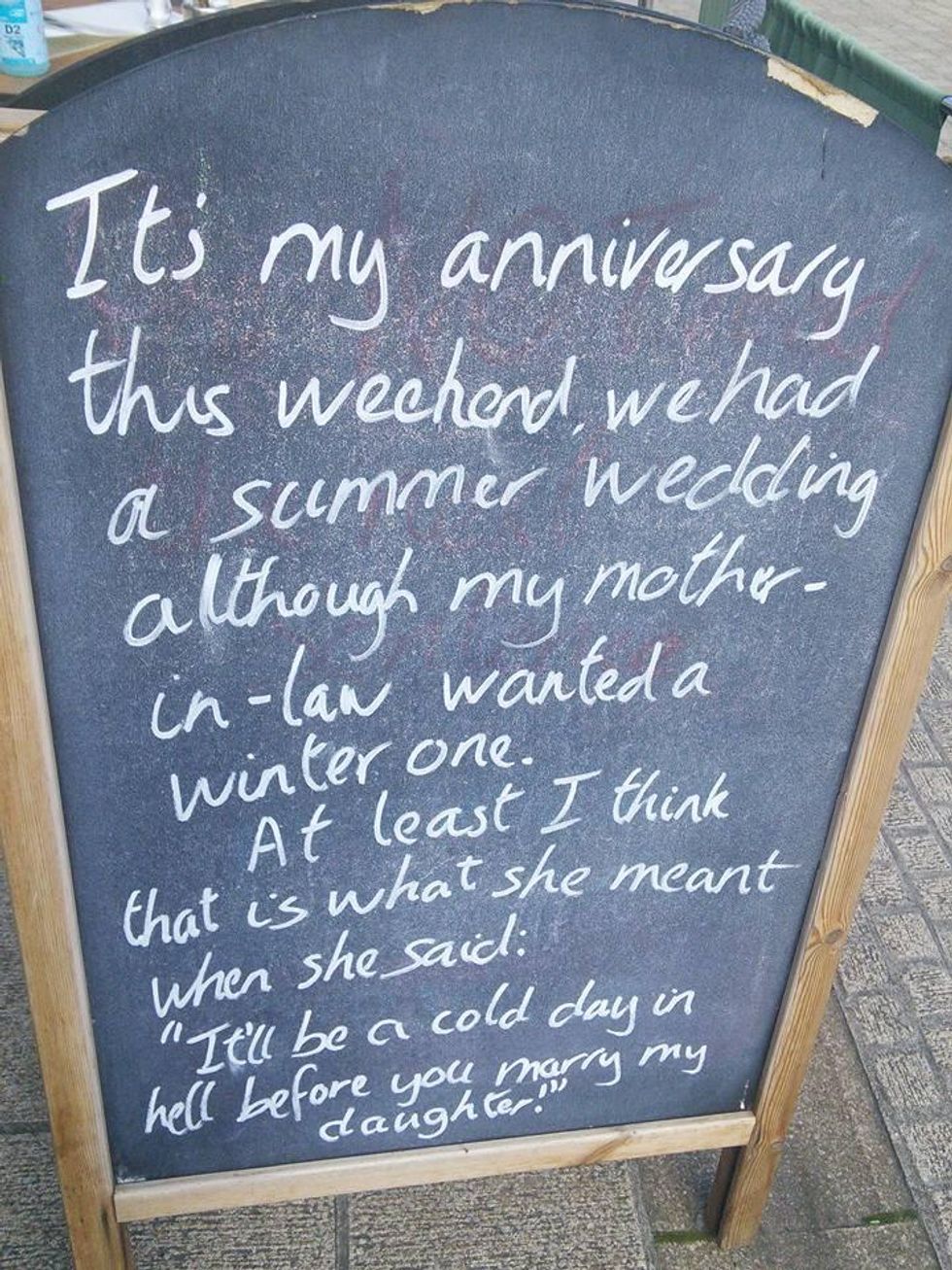 Many of the puns come from my own experience...the 'hell freezes over' as my anniversary is in August.