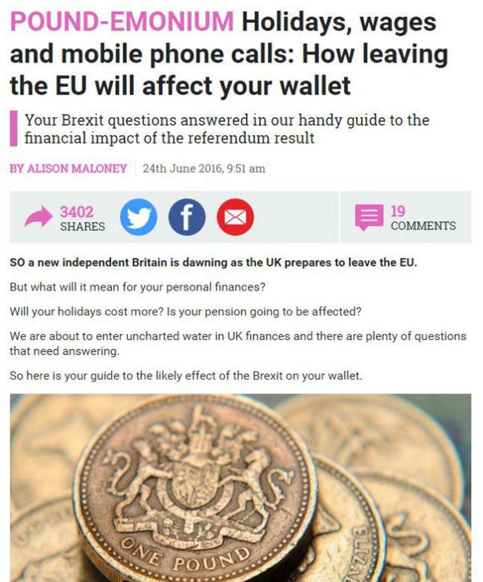A sombre article about the impact on personal finances appeared on the Sun's website after the results came out, and there may have been some back-peddling involved: