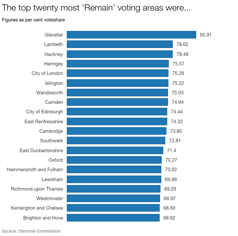 In the capital 59.9 per cent voted in favour of Remaining, and in some places the vote reached over 70 per cent.