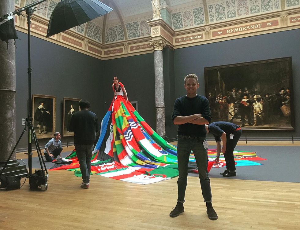 Valentijn de Hingh was also seen modelling the dress outside of the Rijksmuseum